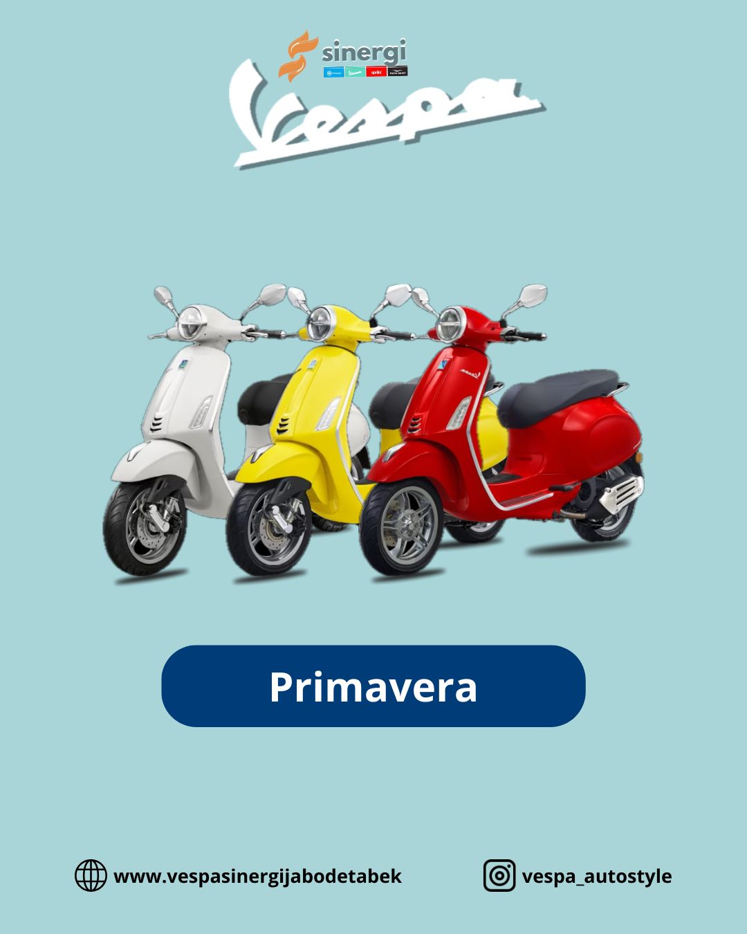Vespa Primavera S - Produk ini istimewa, karena termasuk edisi khusus dan memiliki berbagai detail yang berbeda dibanding Primavera standar. Alhasil, penampilan motor ini terlihat jauh elegan. Terutama berkat penambahan aksen abu-abu di beberapa bagian bodinya.